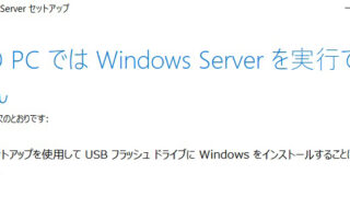 このPCではWindows Serverを実行できません セットアップを使用してUSBフラッシュドライブにWindowsをインストールすることはできません。 対処方法